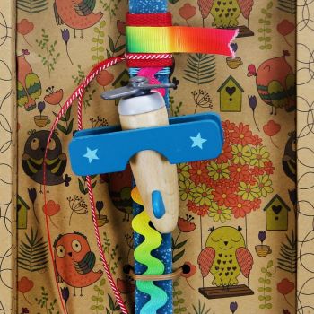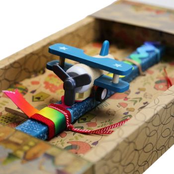 Πασχαλινή λαμπάδα διακοσμημένη με ένα πολύ κομψό ξύλινο αεροπλάνο με μηχανισμό για να τρέχει μόνο του. Τα υλικά διακόσμησης είναι υψηλής ποιότητας και εισάγονται αποκλειστικά από την SYNCHRONIA. Τα αντικείμενα σχεδιάζονται ή επιλέγονται για την αισθητική, την αυθεντικότητα, την φιλικότητα προς το περιβάλλον και το δίκαιο εμπόριο. • Το κερί είναι αρωματικό, χειροποίητο και κατασκευάζεται στην Ελλάδα • Περιλαμβάνεται η πρωτότυπη συσκευασία δώρου με ποτηράκι για το κερί • Ύψος λαμπάδας: 30εκ. • Μέγεθος συσκευασίας: 12x5x34 εκ. Μέγεθος συσκευασίας: 25x5,5x40 εκ