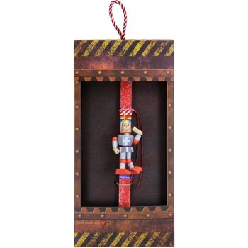 Παιδική λαμπάδα διακοσμημένη με έναν γενναίο και δυνατό Ιππότη έτοιμο να υπερασπιστεί την πριγκίπισσά του! Το κερί είναι αρωματικό, χειροποίητο και κατασκευάζεται στην Ελλάδα. Τα υλικά διακόσμησης είναι υψηλής ποιότητας και εισάγονται αποκλειστικά από την SYNCHRONIA. Τα αντικείμενα σχεδιάζονται ή επιλέγονται όχι μόνο για την αισθητική αλλά και για την αυθεντικότητα, την φιλικότητα προς το περιβάλλον και το δίκαιο εμπόριο. Η βάση προβολής και το εξωτερικό κουτί δώρου περιλαμβάνονται. Ύψος λαμπάδας: 30εκ.• Μέγεθος συσκευασίας: 20x5,5x40 εκ.