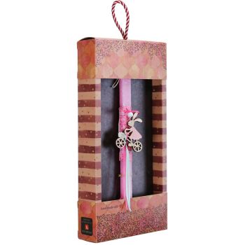 Χαρούμενη πασχαλινή λαμπάδα με ένα κουνελάκι στο ποδήλατό του. Έχουμε ένα αγόρι και ένα κορίτσι για να επιλέξετε για το βαφτιστήρι σας. Φωτεινά, ανοιξιάτικα χρώματα που θα το ενθουσιάσουν. Τα υλικά διακόσμησης είναι υψηλής ποιότητας και εισάγονται αποκλειστικά από την SYNCHRONIA. Τα αντικείμενα σχεδιάζονται ή επιλέγονται για την αισθητική, την αυθεντικότητα, την φιλικότητα προς το περιβάλλον και το δίκαιο εμπόριο. • Το κερί είναι αρωματικό, χειροποίητο και κατασκευάζεται στην Ελλάδα • Περιλαμβάνεται η εντυπωσιακή συσκευασία δώρου με ποτηράκι για το κερί • Ύψος λαμπάδας: 30εκ. • Μέγεθος συσκευασίας: 20x5,5x40 εκ.