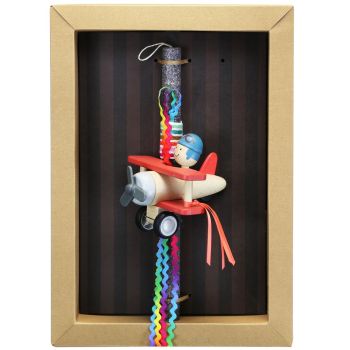 Τέλεια πασχαλινή λαμπάδα διακοσμημένη με ένα απίθανο ξύλινο αεροπλανάκι που θα ξετρελάνει το βαφτιστήρι σας. Τα υλικά διακόσμησης είναι υψηλής ποιότητας και εισάγονται αποκλειστικά από την SYNCHRONIA. Τα αντικείμενα σχεδιάζονται ή επιλέγονται για την αισθητική, την αυθεντικότητα, την φιλικότητα προς το περιβάλλον και το δίκαιο εμπόριο. • Το κερί είναι αρωματικό, χειροποίητο και κατασκευάζεται στην Ελλάδα • Περιλαμβάνεται η εντυπωσιακή συσκευασία δώρου με ποτηράκι για το κερί • Ύψος λαμπάδας: 30εκ. • Μέγεθος συσκευασίας: 25x6x35 εκ.