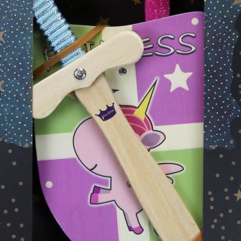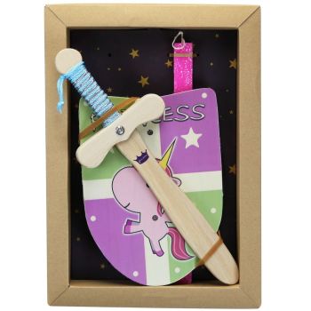 Πασχαλινή λαμπάδα διακοσμημένη με μια ξύλινη ασπίδα και ένα σπαθί για την μικρή σας πριγκίπισσα που ξέρει να πολεμάει για ότι αγαπάει. Τα υλικά διακόσμησης είναι υψηλής ποιότητας και εισάγονται αποκλειστικά από την SYNCHRONIA. Τα αντικείμενα σχεδιάζονται ή επιλέγονται για την αισθητική, την αυθεντικότητα, την φιλικότητα προς το περιβάλλον και το δίκαιο εμπόριο. • Το κερί είναι αρωματικό, χειροποίητο και κατασκευάζεται στην Ελλάδα • Περιλαμβάνεται η εντυπωσιακή συσκευασία δώρου με ποτηράκι για το κερί • Ύψος λαμπάδας: 30εκ. • Μέγεθος συσκευασίας: 25x6x35 εκ.