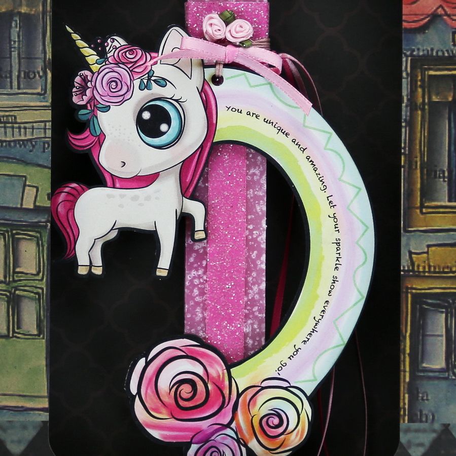 Πασχαλινή λαμπάδα διακοσμημένη με έναν υπέροχο μονόκερο σε ουράνιο τόξο. Τα υλικά διακόσμησης είναι υψηλής ποιότητας και εισάγονται αποκλειστικά από την SYNCHRONIA. Τα αντικείμενα σχεδιάζονται ή επιλέγονται για την αισθητική, την αυθεντικότητα, την φιλικότητα προς το περιβάλλον και το δίκαιο εμπόριο.