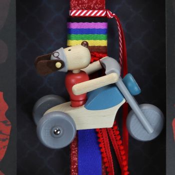 Πασχαλινή λαμπάδα διακοσμημένη με ένα απίθανο ξύλινο παιχνίδι. Τα υλικά διακόσμησης είναι υψηλής ποιότητας και εισάγονται αποκλειστικά από την SYNCHRONIA. Τα αντικείμενα σχεδιάζονται ή επιλέγονται για την αισθητική, την αυθεντικότητα, την φιλικότητα προς το περιβάλλον και το δίκαιο εμπόριο. • Το κερί είναι αρωματικό, χειροποίητο και κατασκευάζεται στην Ελλάδα • Περιλαμβάνεται η εντυπωσιακή συσκευασία δώρου με ποτηράκι για το κερί • Ύψος λαμπάδας: 30εκ. • Μέγεθος συσκευασίας: 25x6x35 εκ.