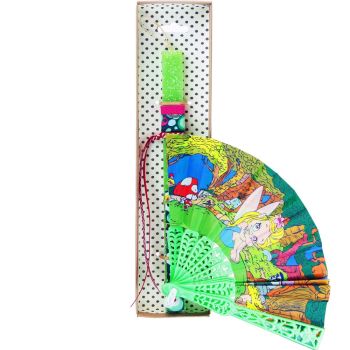 Παιδική πασχαλινή λαμπάδα διακοσμημένη με παιδική βεντάλια από την Ισπανία. Κάθε βεντάλια έχει μια τους χαρακτήρες ενός αγαπημένου παραμυθιού. Πολύ διασκεδαστικό παιχνίδι που θα γίνει τέλειο δώρο για το βαφτιστήρι! Διαλέξτε από τα διάφορα σχέδια. Τα υλικά διακόσμησης είναι υψηλής ποιότητας και εισάγονται αποκλειστικά από την SYNCHRONIA. Τα αντικείμενα σχεδιάζονται ή επιλέγονται όχι μόνο για την αισθητική αλλά και για την αυθεντικότητα, την φιλικότητα προς το περιβάλλον και το δίκαιο εμπόριο. • Το κερί είναι αρωματικό, χειροποίητο και κατασκευάζεται στην Ελλάδα • Περιλαμβάνεται η πρωτότυπη συσκευασία δώρου με ποτηράκι για το κερί • Ύψος λαμπάδας: 30εκ.