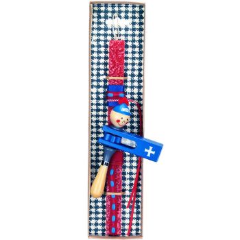 Παιδική πασχαλινή λαμπάδα διακοσμημένη με ξύλινη πολύχρωμη ροκάνα και διάφορους χαρακτήρες. Πολύ διασκεδαστικό παιχνίδι που θα γίνει τέλειο δώρο για το βαφτιστήρι! Διαλέξτε από τα διάφορα σχέδια. Τα υλικά διακόσμησης είναι υψηλής ποιότητας και εισάγονται αποκλειστικά από την SYNCHRONIA. Τα αντικείμενα σχεδιάζονται ή επιλέγονται όχι μόνο για την αισθητική αλλά και για την αυθεντικότητα, την φιλικότητα προς το περιβάλλον και το δίκαιο εμπόριο. • Το κερί είναι αρωματικό, χειροποίητο και κατασκευάζεται στην Ελλάδα • Περιλαμβάνεται η πρωτότυπη συσκευασία δώρου με ποτηράκι για το κερί • Ύψος λαμπάδας: 30εκ.