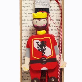 Παιδική λαμπάδα διακοσμημένη με μια ξύλινη μαριονέτα – βασιλιά. Διασκεδαστικό και όμορφο παιδικό παιχνίδι. Το κερί είναι αρωματικό, χειροποίητο και κατασκευάζεται στην Ελλάδα. Τα υλικά διακόσμησης είναι υψηλής ποιότητας και εισάγονται αποκλειστικά από την SYNCHRONIA. Τα αντικείμενα σχεδιάζονται ή επιλέγονται όχι μόνο για την αισθητική αλλά και για την αυθεντικότητα, την φιλικότητα προς το περιβάλλον και το δίκαιο εμπόριο. Η βάση προβολής και το εξωτερικό κουτί δώρου περιλαμβάνονται. Ύψος λαμπάδας: 30εκ.