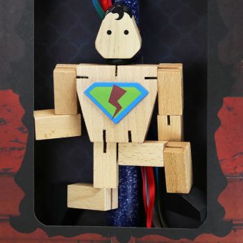 Διακοσμημένη με έναν τεράστιο σούπερ ήρωα ξύλινο παιχνίδι. Το κερί είναι αρωματικό, χειροποίητο και κατασκευάζεται στην Ελλάδα. Τα υλικά διακόσμησης είναι υψηλής ποιότητας και εισάγονται αποκλειστικά από την SYNCHRONIA. Τα αντικείμενα σχεδιάζονται ή επιλέγονται όχι μόνο για την αισθητική αλλά και για την αυθεντικότητα, την φιλικότητα προς το περιβάλλον και το δίκαιο εμπόριο. Η βάση προβολής και το εξωτερικό κουτί δώρου περιλαμβάνονται. Ύψος λαμπάδας: 30εκ.