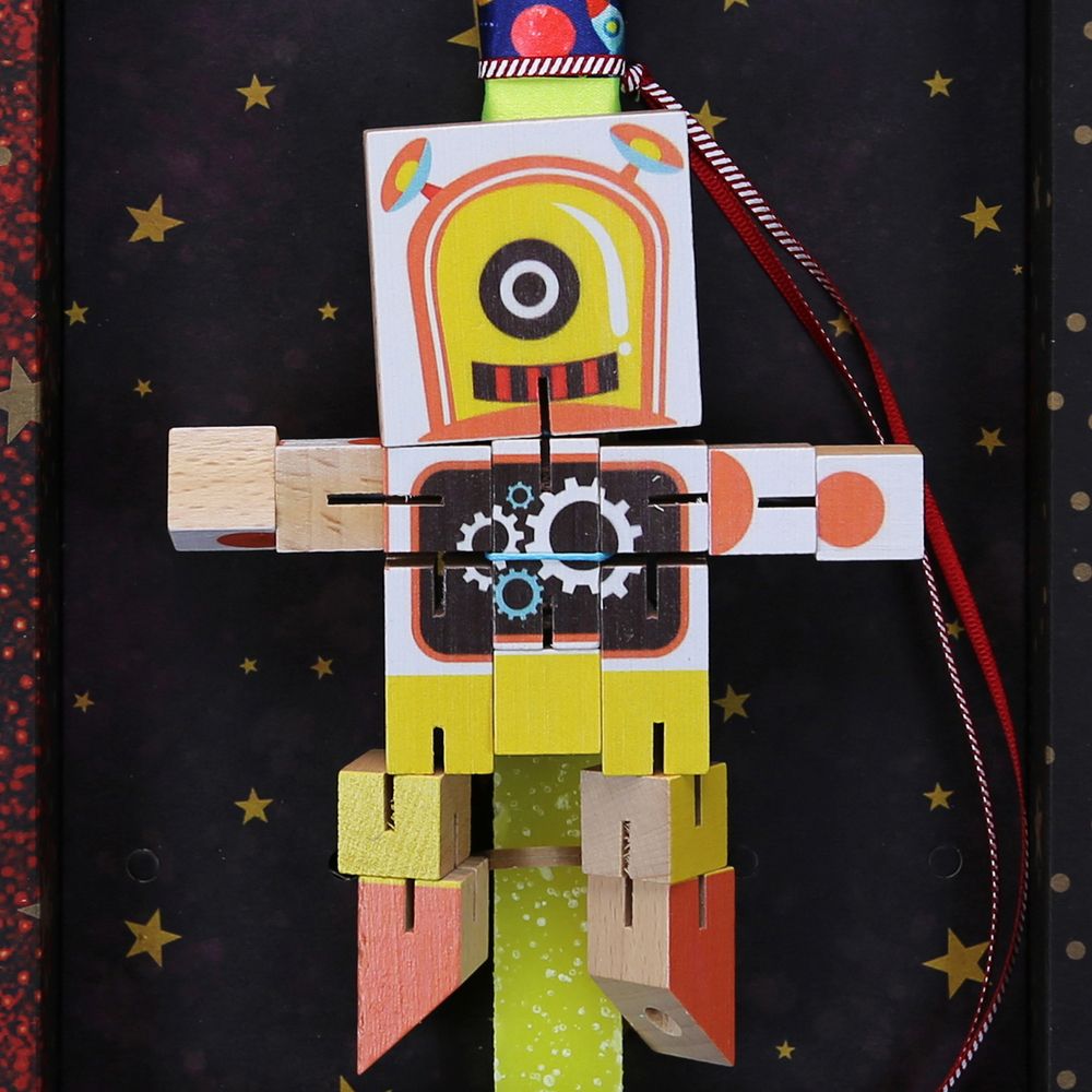 Αυτή η πασχαλινή λαμπάδα συνοδεύεται από ένα ξύλινο ρομπότ τρανσφόρμερ, ιδανικό για πολλές ώρες δημιουργικού παιχνιδιού. Επιλέξτε ανάμεσα σε 3 μοναδικές εκδοχές και χαρίστε στο βαφτιστήρι σας ένα ξεχωριστό δώρο! - Τα υλικά διακόσμησης είναι υψηλής ποιότητας και εισάγονται αποκλειστικά από την SYNCHRONIA. - Όλα τα αντικείμενα σχεδιάζονται ή επιλέγονται για την αισθητική, την αυθεντικότητα, τη φιλικότητα προς το περιβάλλον και το δίκαιο εμπόριο.