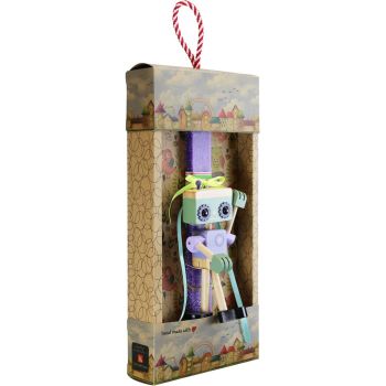 Παιδική λαμπάδα διακοσμημένη με ένα ξύλινο ρομπότ. Αγαπημένο και διασκεδαστικό παιχνίδι για τα παιδιά. Το κερί είναι αρωματικό, χειροποίητο και κατασκευάζεται στην Ελλάδα. Τα υλικά διακόσμησης είναι υψηλής ποιότητας και εισάγονται αποκλειστικά από την SYNCHRONIA. Τα αντικείμενα σχεδιάζονται ή επιλέγονται όχι μόνο για την αισθητική αλλά και για την αυθεντικότητα, την φιλικότητα προς το περιβάλλον και το δίκαιο εμπόριο. Η βάση προβολής και το εξωτερικό κουτί δώρου περιλαμβάνονται. Ύψος λαμπάδας: 30εκ.• Μέγεθος συσκευασίας: 20x5,5x40 εκ.