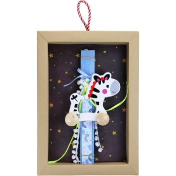 Παιδική λαμπάδα διακοσμημένη με ένα ξύλινο ζωάκι με ρόδες. Διασκεδαστικό παιχνίδι για τα μικρά παιδιά. Το κερί είναι αρωματικό, χειροποίητο και κατασκευάζεται στην Ελλάδα. Τα υλικά διακόσμησης είναι υψηλής ποιότητας και εισάγονται αποκλειστικά από την SYNCHRONIA. Τα αντικείμενα σχεδιάζονται ή επιλέγονται όχι μόνο για την αισθητική αλλά και για την αυθεντικότητα, την φιλικότητα προς το περιβάλλον και το δίκαιο εμπόριο. Η βάση προβολής και το εξωτερικό κουτί δώρου περιλαμβάνονται. Ύψος λαμπάδας: 30εκ.•• Μέγεθος συσκευασίας: 25x6x35 εκ.