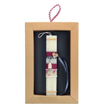 Πασχαλινή λαμπάδα 20 εκ σε συρταρωτό κουτί δώρου διακοσμημένη με ένα ξύλινο χειροποίητο μικροσκοπικό βαζάκι με συρμάτινα λουλούδια που συνδυάζονται με vintage κορδέλες και δημιουργούν μια όμορφη μινιατούρα. Μια λαμπάδα που είναι ένα τέλειο δώρο για αγαπημένα μας πρόσωπα. Τα υλικά διακόσμησης είναι υψηλής ποιότητας και εισάγονται αποκλειστικά από την SYNCHRONIA. Τα αντικείμενα σχεδιάζονται ή επιλέγονται όχι μόνο για την αισθητική αλλά και για την αυθεντικότητα, την φιλικότητα προς το περιβάλλον και το δίκαιο εμπόριο. • Το κερί είναι αρωματικό, χειροποίητο και κατασκευάζεται στην Ελλάδα • Περιλαμβάνεται η πρωτότυπη συσκευασία δώρου με ποτηράκι για το κερί • Ύψος λαμπάδας: 20εκ.