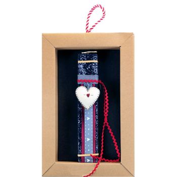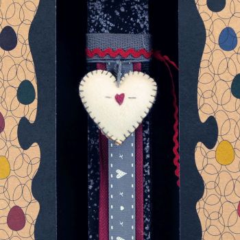 Πασχαλινή λαμπάδα 20 εκ σε συρταρωτό κουτί δώρου διακοσμημένη με μια μικρή καρδιά από φίνα μάλλινη τσόχα (φελτ), εμφανείς ραφές και μια κεντημένη καρδούλα στο κέντρο. Μια εξαιρετική ιδέα για δώρο σε κάποιο πολύ αγαπημένο μας πρόσωπο. Τα υλικά διακόσμησης είναι υψηλής ποιότητας και εισάγονται αποκλειστικά από την SYNCHRONIA. Τα αντικείμενα σχεδιάζονται ή επιλέγονται όχι μόνο για την αισθητική αλλά και για την αυθεντικότητα, την φιλικότητα προς το περιβάλλον και το δίκαιο εμπόριο. • Το κερί είναι αρωματικό, χειροποίητο και κατασκευάζεται στην Ελλάδα • Περιλαμβάνεται η πρωτότυπη συσκευασία δώρου με ποτηράκι για το κερί • Ύψος λαμπάδας: 20εκ.