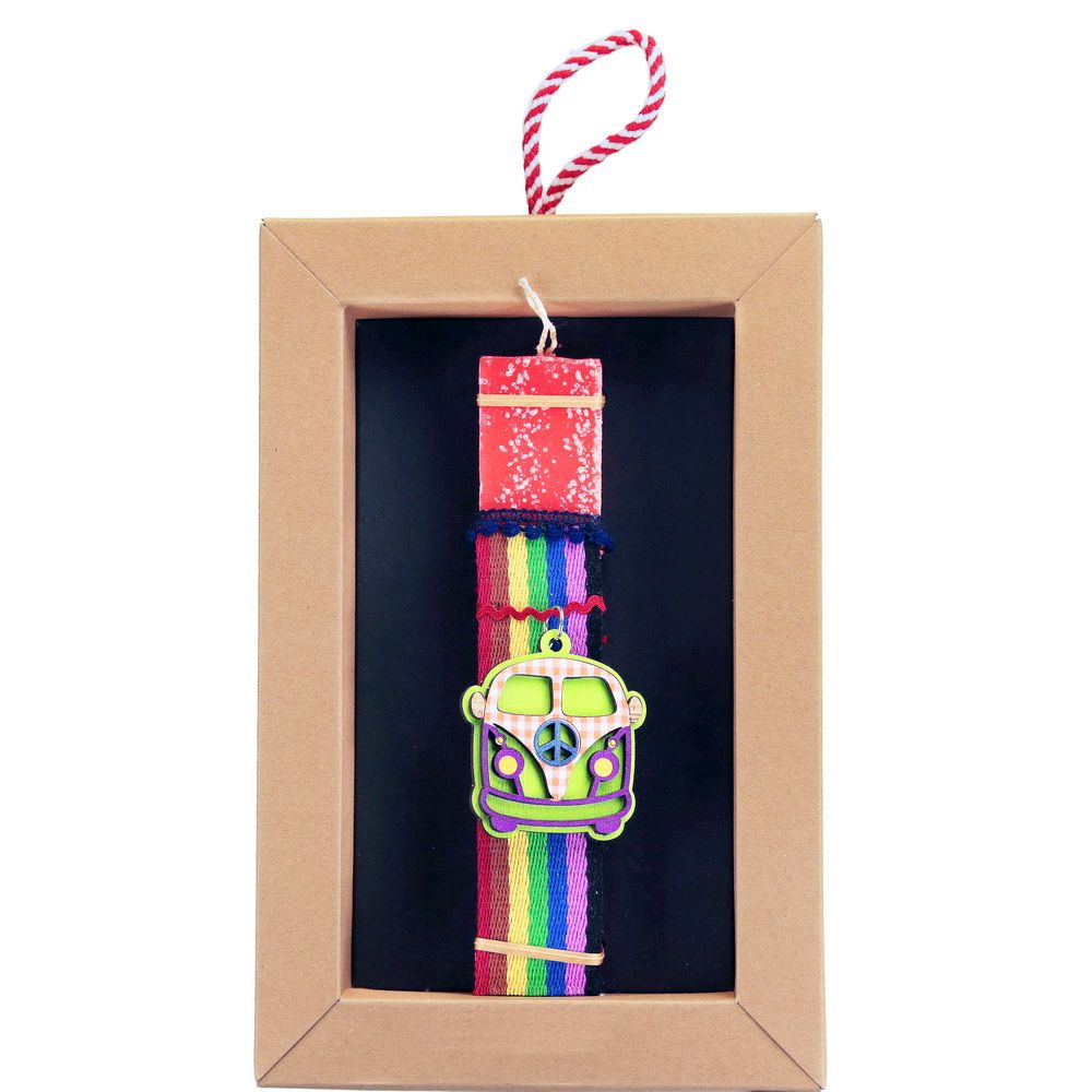 Πασχαλινή λαμπάδα 20 εκ σε συρταρωτό κουτί δώρου διακοσμημένη με ένα camper μπρελόκ σε τέλεια χρώματα και μοτίβα το οποίο θα βάλετε στα κλειδιά σας μετά το Πάσχα. Διαλέξτε από τα πολλά διαφορετικά σχέδια. Τα υλικά διακόσμησης είναι υψηλής ποιότητας και εισάγονται αποκλειστικά από την SYNCHRONIA. Τα αντικείμενα σχεδιάζονται ή επιλέγονται όχι μόνο για την αισθητική αλλά και για την αυθεντικότητα, την φιλικότητα προς το περιβάλλον και το δίκαιο εμπόριο. • Το κερί είναι αρωματικό, χειροποίητο και κατασκευάζεται στην Ελλάδα • Περιλαμβάνεται η πρωτότυπη συσκευασία δώρου με ποτηράκι για το κερί • Ύψος λαμπάδας: 20εκ.