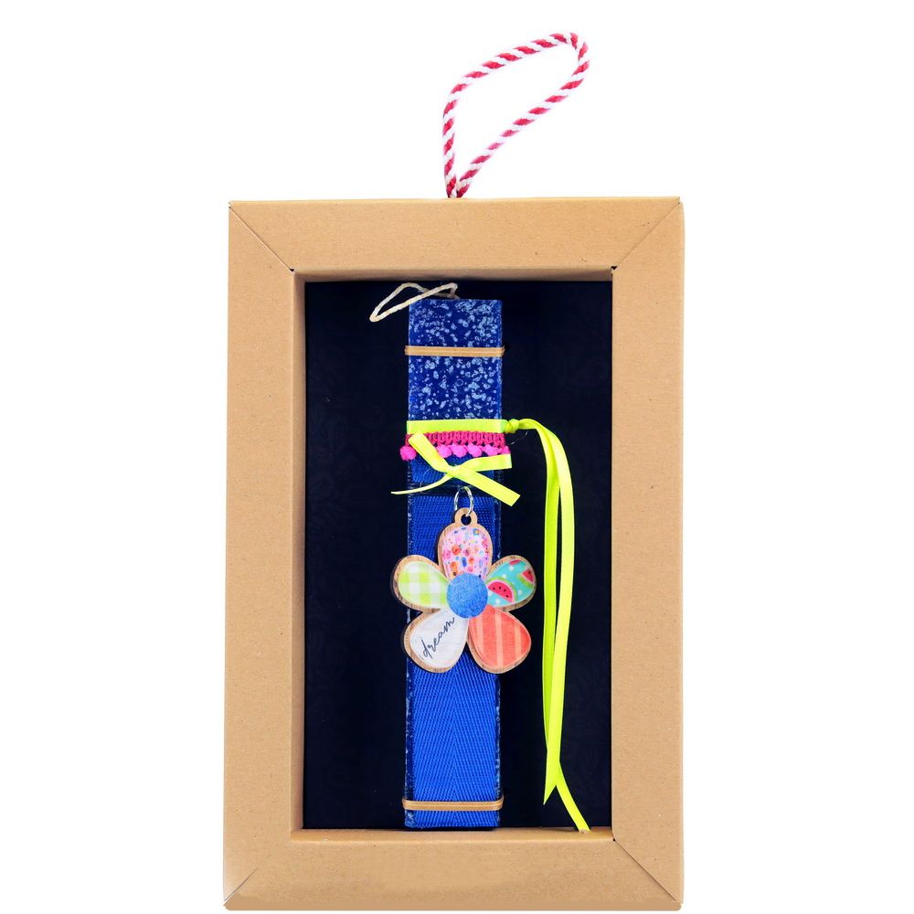 Λαμπάδα 20 εκ.Μπρελόκ λουλούδι - Μπλε ελεκτρίκ