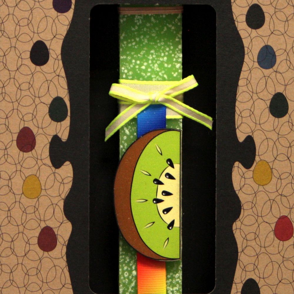 Διακοσμημένη με μαγνητάκι σε σχήμα φρούτου. Το κερί είναι αρωματικό, χειροποίητο και κατασκευάζεται στην Ελλάδα. Τα υλικά διακόσμησης είναι υψηλής ποιότητας και εισάγονται αποκλειστικά από την SYNCHRONIA. Τα αντικείμενα σχεδιάζονται ή επιλέγονται όχι μόνο για την αισθητική αλλά και για την αυθεντικότητα, την φιλικότητα προς το περιβάλλον και το δίκαιο εμπόριο. Έρχεται σε συσκευασία δώρου. Ύψος λαμπάδας: 20εκ.