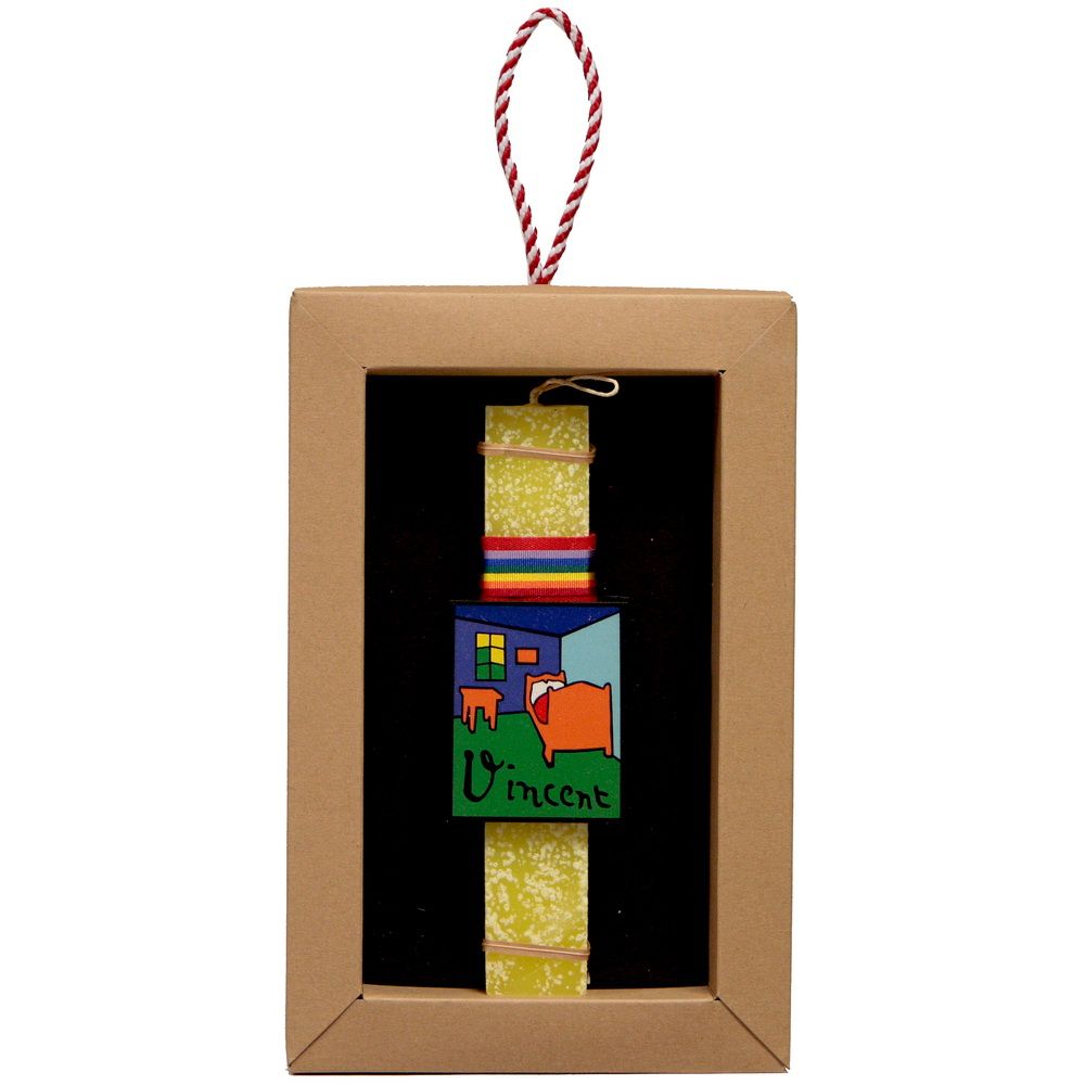 Διακοσμημένη με μαγνητάκια πίνακες που αναφέρονται σε διάσημους ζωγράφους. Το κερί είναι αρωματικό, χειροποίητο και κατασκευάζεται στην Ελλάδα. Τα υλικά διακόσμησης είναι υψηλής ποιότητας και εισάγονται αποκλειστικά από την SYNCHRONIA. Τα αντικείμενα σχεδιάζονται ή επιλέγονται όχι μόνο για την αισθητική αλλά και για την αυθεντικότητα, την φιλικότητα προς το περιβάλλον και το δίκαιο εμπόριο. Έρχεται σε συσκευασία δώρου. Ύψος λαμπάδας: 20εκ.