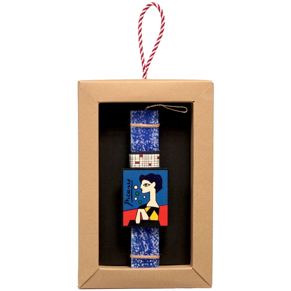 Διακοσμημένη με μαγνητάκια πίνακες που αναφέρονται σε διάσημους ζωγράφους. Το κερί είναι αρωματικό, χειροποίητο και κατασκευάζεται στην Ελλάδα. Τα υλικά διακόσμησης είναι υψηλής ποιότητας και εισάγονται αποκλειστικά από την SYNCHRONIA. Τα αντικείμενα σχεδιάζονται ή επιλέγονται όχι μόνο για την αισθητική αλλά και για την αυθεντικότητα, την φιλικότητα προς το περιβάλλον και το δίκαιο εμπόριο. Έρχεται σε συσκευασία δώρου. Ύψος λαμπάδας: 20εκ.
