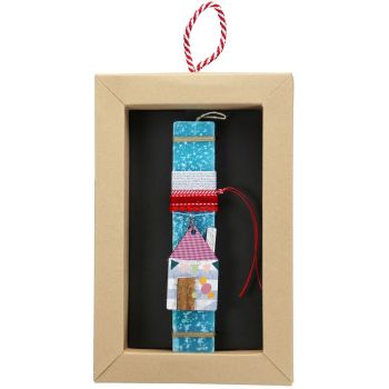 Λαμπάδα 20 εκ. διακοσμημένη με μπρελόκ με ξύλινο σπιτάκι. Το κερί είναι αρωματικό, χειροποίητο και κατασκευάζεται στην Ελλάδα. Τα υλικά διακόσμησης είναι υψηλής ποιότητας και εισάγονται αποκλειστικά από την SYNCHRONIA. Τα αντικείμενα σχεδιάζονται ή επιλέγονται όχι μόνο για την αισθητική αλλά και για την αυθεντικότητα, την φιλικότητα προς το περιβάλλον και το δίκαιο εμπόριο. Έρχεται σε συσκευασία δώρου. Ύψος λαμπάδας: 20εκ.
