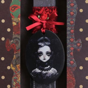 Λαμπάδα διακοσμημένη το πορτραίτο μια μικρής δεσποινίδας με έντονο goth μακιγιάζ, συνδυασμένο με κορδέλες στο ίδιο ύφος. Τέλεια λαμπάδα για τα κορίτσια που ακολουθούν το στιλ αυτό. Τα υλικά διακόσμησης είναι υψηλής ποιότητας και εισάγονται αποκλειστικά από την SYNCHRONIA. Τα αντικείμενα σχεδιάζονται ή επιλέγονται όχι μόνο για την αισθητική αλλά και για την αυθεντικότητα, την φιλικότητα προς το περιβάλλον και το δίκαιο εμπόριο. • Το κερί είναι αρωματικό, χειροποίητο και κατασκευάζεται στην Ελλάδα • Περιλαμβάνεται η πρωτότυπη συσκευασία δώρου με ποτηράκι για το κερί • Ύψος λαμπάδας: 20εκ. • Μέγεθος συσκευασίας: 17x5x26 εκ.