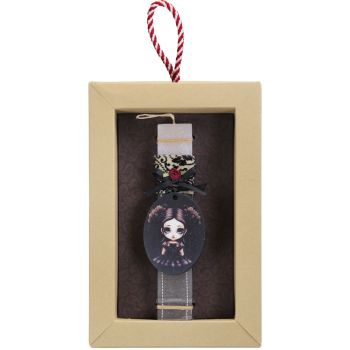 Λαμπάδα διακοσμημένη το πορτραίτο μια μικρής δεσποινίδας με έντονο goth μακιγιάζ, συνδυασμένο με κορδέλες στο ίδιο ύφος. Τέλεια λαμπάδα για τα κορίτσια που ακολουθούν το στιλ αυτό. Τα υλικά διακόσμησης είναι υψηλής ποιότητας και εισάγονται αποκλειστικά από την SYNCHRONIA. Τα αντικείμενα σχεδιάζονται ή επιλέγονται όχι μόνο για την αισθητική αλλά και για την αυθεντικότητα, την φιλικότητα προς το περιβάλλον και το δίκαιο εμπόριο. • Το κερί είναι αρωματικό, χειροποίητο και κατασκευάζεται στην Ελλάδα • Περιλαμβάνεται η πρωτότυπη συσκευασία δώρου με ποτηράκι για το κερί • Ύψος λαμπάδας: 20εκ. • Μέγεθος συσκευασίας: 17x5x26 εκ.