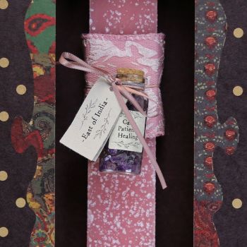 Αυτή η πασχαλινή λαμπάδα συνοδεύεται από ένα γυάλινο μπουκαλάκι γεμάτο με κρυστάλλους Αμέθυστου, γνωστούς για τις μοναδικές τους ιδιότητες που προάγουν την ηρεμία, την υπομονή και τη θεραπεία. Ένα ιδιαίτερο δώρο που προσφέρει ευεργετική ενέργεια και φυσική ομορφιά. - Τα υλικά διακόσμησης είναι υψηλής ποιότητας και εισάγονται αποκλειστικά από την SYNCHRONIA. - Όλα τα αντικείμενα σχεδιάζονται ή επιλέγονται για την αισθητική, την αυθεντικότητα, τη φιλικότητα προς το περιβάλλον και το δίκαιο εμπόριο. - Το κερί είναι αρωματικό, χειροποίητο και κατασκευάζεται στην Ελλάδα. - Περιλαμβάνεται εντυπωσιακή συσκευασία δώρου με ποτηράκι για το κερί. - Ύψος λαμπάδας: 20 εκ. - Μέγεθος συσκευασίας: 17x5x26 εκ.