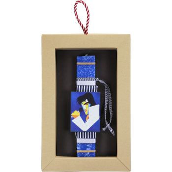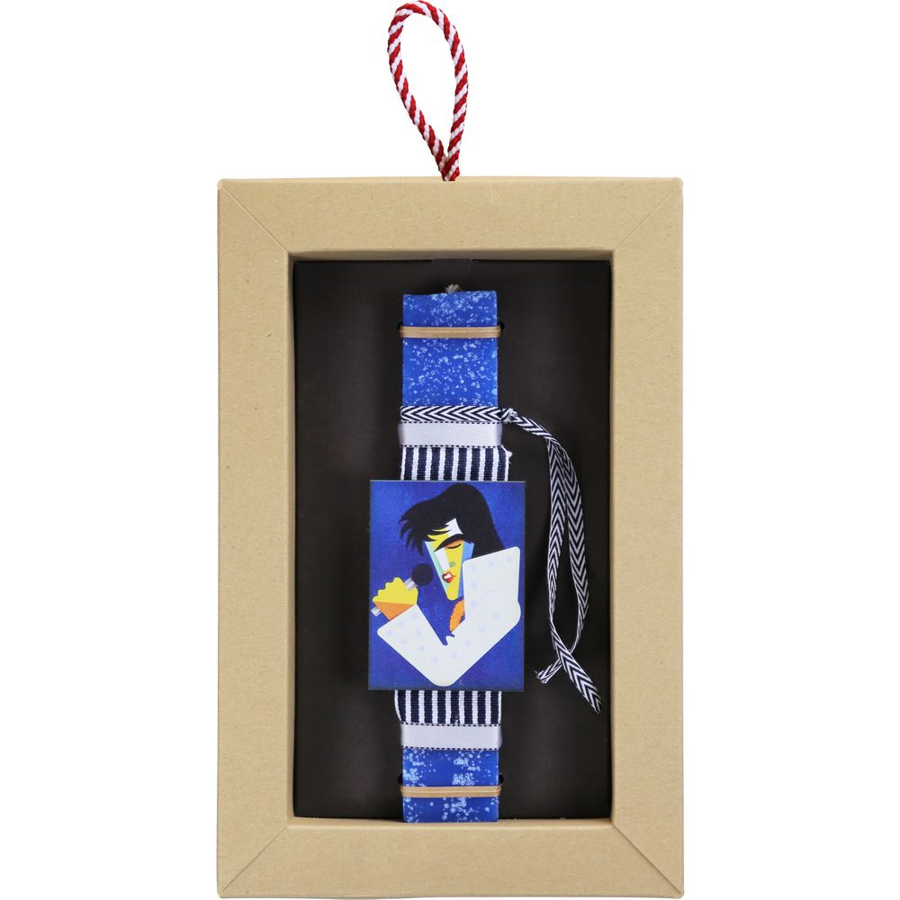 Λαμπάδα διακοσμημένη με αφαιρετικούς πίνακες μαγνητάκια από διάσημους τραγουδιστές. Μπορείτε να διαλέξετε ανάμεσα στο Έλβις, τον Φρέντι Μέρκιουρι, τον Ντέιβιντ Μπάουι και τον Μάικλ Τζάκσον. Δύσκολη επιλογή αλλά όποια και να διαλέξετε θα την λατρέψουν. Τα υλικά διακόσμησης είναι υψηλής ποιότητας και εισάγονται αποκλειστικά από την SYNCHRONIA. Τα αντικείμενα σχεδιάζονται ή επιλέγονται όχι μόνο για την αισθητική αλλά και για την αυθεντικότητα, την φιλικότητα προς το περιβάλλον και το δίκαιο εμπόριο. • Το κερί είναι αρωματικό, χειροποίητο και κατασκευάζεται στην Ελλάδα • Περιλαμβάνεται η πρωτότυπη συσκευασία δώρου με ποτηράκι για το κερί • Ύψος λαμπάδας: 20εκ. • Μέγεθος συσκευασίας: 17x5x26 εκ.