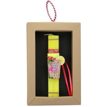 Πασχαλινή λαμπάδα 20 εκ. σε συρταρωτό κουτί δώρου διακοσμημένη με ένα μαγνητάκι κοκτέιλ. Θα την βρείτε σε πολλά σχέδια για να επιλέξετε. Τα υλικά διακόσμησης είναι υψηλής ποιότητας και εισάγονται αποκλειστικά από την SYNCHRONIA. Τα αντικείμενα σχεδιάζονται ή επιλέγονται όχι μόνο για την αισθητική αλλά και για την αυθεντικότητα, την φιλικότητα προς το περιβάλλον και το δίκαιο εμπόριο. • Το κερί είναι αρωματικό, χειροποίητο και κατασκευάζεται στην Ελλάδα • Περιλαμβάνεται η πρωτότυπη συσκευασία δώρου με ποτηράκι για το κερί • Ύψος λαμπάδας: 20εκ. • Μέγεθος συσκευασίας: 17x5x26 εκ.