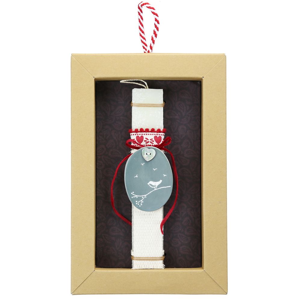 Πασχαλινή λαμπάδα 20 εκ. σε συρταρωτό κουτί δώρου διακοσμημένη με μια οβάλ πορσελάνινη πλακέτα. Η μπροστινή της πλευρά είναι ματ γκρι με σχέδια και από την πίσω πλευρά φαίνεται η λευκή πορσελάνη με ένα μήνυμα εγχάρακτο. Πορσελάνη σχεδιασμένη από την Αγγλική εταιρία East of India. Μια λαμπάδα που είναι ένα τέλειο δώρο για αγαπημένα μας πρόσωπα. Τα υλικά διακόσμησης είναι υψηλής ποιότητας και εισάγονται αποκλειστικά από την SYNCHRONIA. Τα αντικείμενα σχεδιάζονται ή επιλέγονται όχι μόνο για την αισθητική αλλά και για την αυθεντικότητα, την φιλικότητα προς το περιβάλλον και το δίκαιο εμπόριο. • Το κερί είναι αρωματικό, χειροποίητο και κατασκευάζεται στην Ελλάδα • Περιλαμβάνεται η πρωτότυπη συσκευασία δώρου με ποτηράκι για το κερί • Ύψος λαμπάδας: 20εκ. • Μέγεθος συσκευασίας: 17x5x26 εκ.