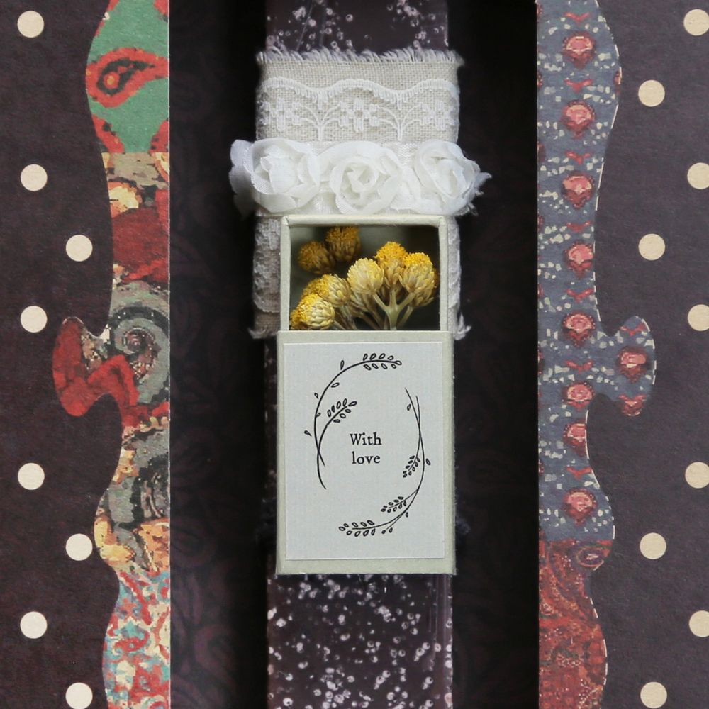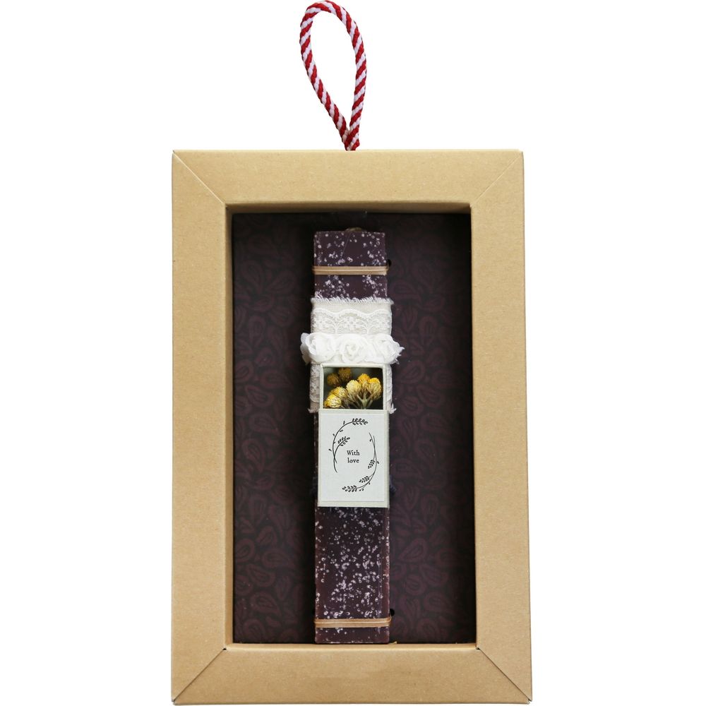 Τι να πούμε γι’ αυτή την λαμπάδα που δεν φαίνεται μόνο του!!!? Μικροσκοπικά αποξηραμένα λουλουδάκια σε ένα vintage σπιρτόκουτο με μηνύματα όπως “Σε σκέφτομαι», «Με Αγάπη». Ερωτευμένοι όλου του κόσμου, αυτή είναι η λαμπάδα σας!!!! Και μαζί και κρεμ τριανταφυλλάκια και δαντέλες και καρδούλες και έρωτας, Αχ – Βαχ! -Εννοείται Best seller!- Τα υλικά διακόσμησης είναι υψηλής ποιότητας και εισάγονται αποκλειστικά από την SYNCHRONIA. Τα αντικείμενα σχεδιάζονται ή επιλέγονται όχι μόνο για την αισθητική αλλά και για την αυθεντικότητα, την φιλικότητα προς το περιβάλλον και το δίκαιο εμπόριο. • Το κερί είναι αρωματικό, χειροποίητο και κατασκευάζεται στην Ελλάδα • Περιλαμβάνεται η πρωτότυπη συσκευασία δώρου με ποτηράκι για το κερί • Ύψος λαμπάδας: 20εκ. • Μέγεθος συσκευασίας: 17x5x26 εκ.