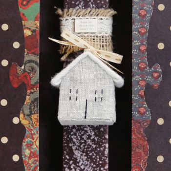 Μια πασχαλινή λαμπάδα διακοσμημένη με ένα τρισδιάστατο σπιτάκι ντυμένο με λινό ύφασμα και κεντημένες λεπτομέρειες. Μια μικρή ξύλινη επιγραφή πάνω στην δαντέλα ολοκληρώνει την διακόσμηση με το όμορφο μήνυμα της. Θα την βρείτε σε δύο εκδοχές για να επιλέξετε. Τα υλικά διακόσμησης είναι υψηλής ποιότητας και εισάγονται αποκλειστικά από την SYNCHRONIA. Τα αντικείμενα σχεδιάζονται ή επιλέγονται όχι μόνο για την αισθητική αλλά και για την αυθεντικότητα, την φιλικότητα προς το περιβάλλον και το δίκαιο εμπόριο. • Το κερί είναι αρωματικό, χειροποίητο και κατασκευάζεται στην Ελλάδα • Περιλαμβάνεται η πρωτότυπη συσκευασία δώρου με ποτηράκι για το κερί • Ύψος λαμπάδας: 20εκ. • Μέγεθος συσκευασίας: 17x5x26 εκ.