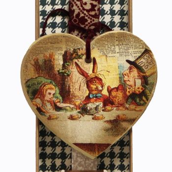 Ξύλινη καρδιά που αφηγείται μια σελίδα από το διάσημο παραμύθι της Αλίκης στη χώρα των θαυμάτων. Το κερί είναι αρωματικό, χειροποίητο και κατασκευάζεται στην Ελλάδα. Τα υλικά διακόσμησης είναι υψηλής ποιότητας και εισάγονται αποκλειστικά από την SYNCHRONIA. Τα αντικείμενα σχεδιάζονται ή επιλέγονται όχι μόνο για την αισθητική αλλά και για την αυθεντικότητα, την φιλικότητα προς το περιβάλλον και το δίκαιο εμπόριο. Η βάση προβολής και το εξωτερικό κουτί δώρου περιλαμβάνονται. Ύψος λαμπάδας: 30εκ.