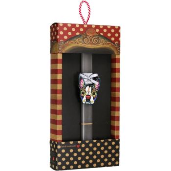 Μια λαμπάδα για τους λάτρεις των σκύλων με καλλιτεχνική διάθεση! Η Πασχαλινή Λαμπάδα Bacic με ξύλινο διακοσμητικό γαλλικό μπουλντόγκ σε Day of the Dead στυλ είναι η τέλεια επιλογή για όσους αγαπούν τα σκυλιά και την urban αισθητική. Η σειρά Bacic συνδυάζει την υψηλή ποιότητα και την αισθητική Synchronia, προσφέροντας μια προσιτή και μοναδική επιλογή για το Πάσχα.