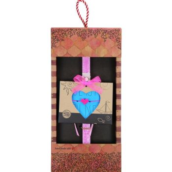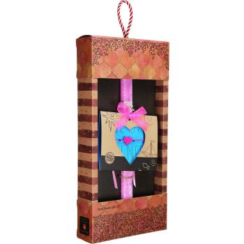Μια πασχαλινή λαμπάδα γεμάτη χρώμα, τρυφερότητα και χαμόγελα, σχεδιασμένη ειδικά για κορίτσια. Το φλούο ροζ κερί συνδυάζεται με ένα χειροποίητο βραχιολάκι μακραμέ σε σχήμα καρδιάς, δημιουργώντας ένα δώρο που δεν τελειώνει την Ανάσταση αλλά συνεχίζει να φοριέται και μετά.