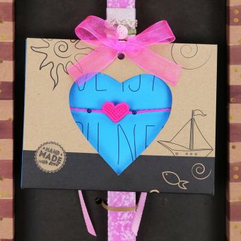Λαμπάδα Bραχιόλι μακραμέ Καρδιά - Ροζ