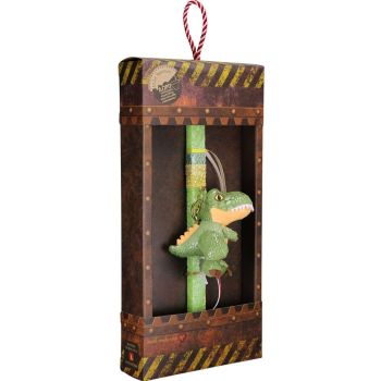 Μια λαμπάδα για μικρούς εξερευνητές! Ο πράσινος δεινόσαυρος σε μορφή μπρελόκ δίνει χαρακτήρα και κάνει το δώρο ξεχωριστό, ιδανικό για αγόρια που λατρεύουν τους δεινόσαυρους και τις ιστορίες περιπέτειας.