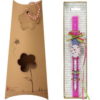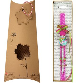 Πασχαλινή λαμπάδα διακοσμημένη με μια όμορφη φουρκέτα με boho σχέδια. Κάντε τα μαλλιά έναν χαλαρό κότσο και στερεώστε τα με αυτή την μοναδική φουρκέτα. Διαλέξτε ένα από τα πολλά σχέδια. Τα υλικά διακόσμησης είναι υψηλής ποιότητας και εισάγονται αποκλειστικά από την SYNCHRONIA. Τα αντικείμενα σχεδιάζονται ή επιλέγονται για την αισθητική, την αυθεντικότητα, την φιλικότητα προς το περιβάλλον και το δίκαιο εμπόριο. • Το κερί είναι αρωματικό, χειροποίητο και κατασκευάζεται στην Ελλάδα • Περιλαμβάνεται η πρωτότυπη συσκευασία δώρου με ποτηράκι για το κερί • Ύψος λαμπάδας: 30εκ. • Μέγεθος συσκευασίας: 12x5x34 εκ.