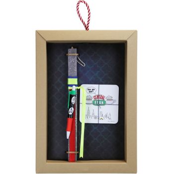 Από την αγαπημένη σειρά Friends αυτή η λαμπάδα είναι διακοσμημένη με ένα στυλό και ένα σουβέρ. Για όλους εσάς του λάτρες της σειράς αυτή είναι η τέλεια λαμπάδα! Τα υπόλοιπα υλικά διακόσμησης είναι υψηλής ποιότητας και εισάγονται αποκλειστικά από την SYNCHRONIA. Τα αντικείμενα σχεδιάζονται ή επιλέγονται για την αισθητική, την αυθεντικότητα, την φιλικότητα προς το περιβάλλον και το δίκαιο εμπόριο. • Το κερί είναι αρωματικό, χειροποίητο και κατασκευάζεται στην Ελλάδα • Περιλαμβάνεται η εντυπωσιακή συσκευασία δώρου με ένα ποτηράκι για το κερί • Ύψος λαμπάδας: 30εκ. • Μέγεθος συσκευασίας: 25x6x35 εκ.
