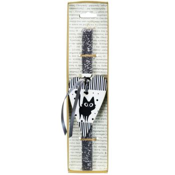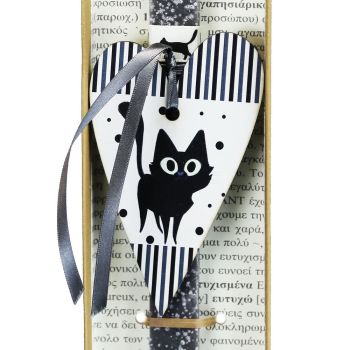 Λαμπάδα διακοσμημένη με μια φίνα καρδιά ζωγραφισμένη με μια κομψή γάτα σε μαύρο χρώμα. Το κερί είναι αρωματικό, χειροποίητο και κατασκευάζεται στην Ελλάδα. Τα υλικά διακόσμησης είναι υψηλής ποιότητας και εισάγονται αποκλειστικά από την SYNCHRONIA. Τα αντικείμενα σχεδιάζονται ή επιλέγονται όχι μόνο για την αισθητική αλλά και για την αυθεντικότητα, την φιλικότητα προς το περιβάλλον και το δίκαιο εμπόριο. Η βάση προβολής και το εξωτερικό κουτί δώρου περιλαμβάνονται. Ύψος λαμπάδας: 30εκ.