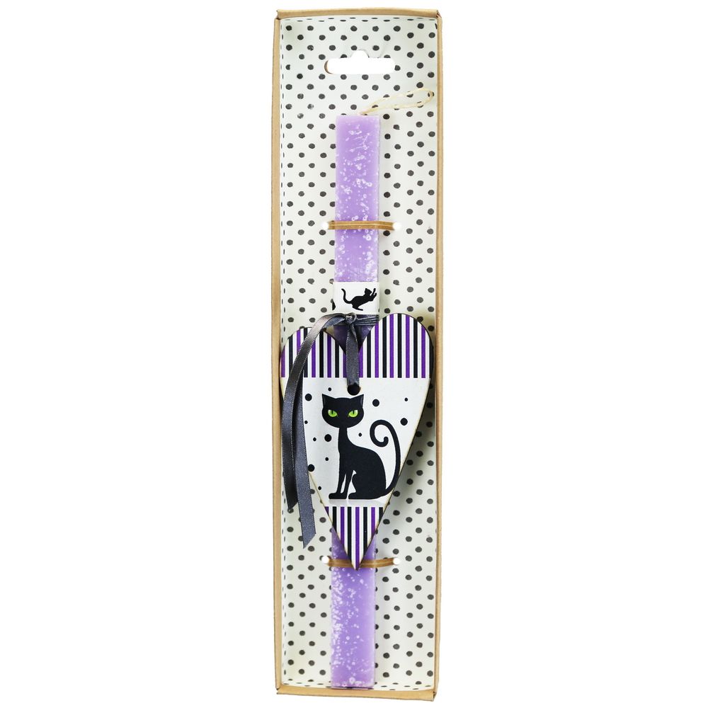 Λαμπάδα Γάτα σε καρδιά - Λιλά