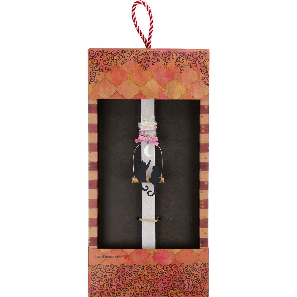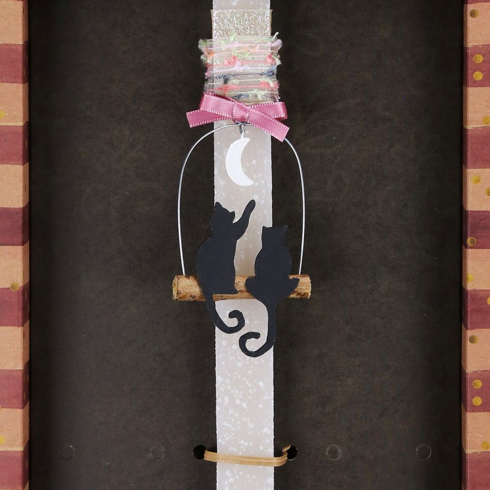 Μια πασχαλινή λαμπάδα με διακριτική κομψότητα και βαθύ συναίσθημα. Οι γατούλες κάτω από το φεγγάρι δημιουργούν μια εικόνα που θυμίζει παραμύθι, ιδανική για όσους αγαπούν τα συμβολικά και ρομαντικά σχέδια. Κατάλληλη για κορίτσια, εφήβους και ενήλικες που θέλουν κάτι ξεχωριστό. Χειροποίητη κατασκευή με ποιοτικά υλικά και οικολογική συσκευασία υψηλής αισθητικής.