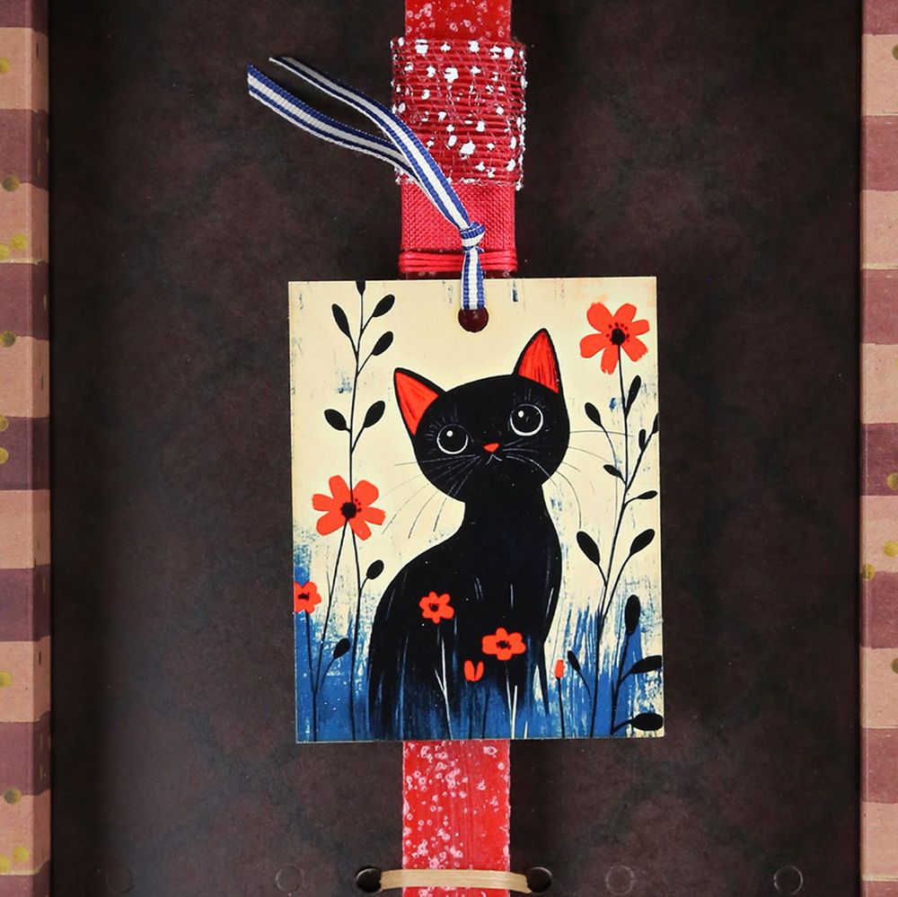 Μια γάτα που φέρνει στιλ στην Ανάσταση! Χειροποίητη λαμπάδα 30εκ. με ξύλινο καλλιτεχνικό καδράκι γάτας σε ιδιαίτερη σύνθεση. Ιδανική για παιδιά, εφήβους αλλά και ενήλικες που αγαπούν τη γάτα και το design με χαρακτήρα. Το ξύλινο στοιχείο αφαιρείται και παραμένει ως διακοσμητικό.