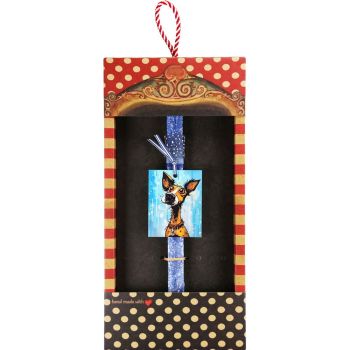 Για εκείνον ή εκείνη που δεν μπορεί να αντισταθεί σε ένα βλέμμα γεμάτο αφοσίωση! Χειροποίητη λαμπάδα 30εκ. με ξύλινο καλλιτεχνικό καδράκι σκύλου, δεμένο με προσοχή και αισθητική λεπτομέρεια. Ιδανική για παιδιά, εφήβους αλλά και ενήλικες που αγαπούν τα ζώα και το ιδιαίτερο design. Το ξύλινο στοιχείο μπορεί να κρατηθεί ως διακοσμητικό, κάνοντας το δώρο να “ζει” και μετά το Πάσχα.