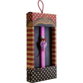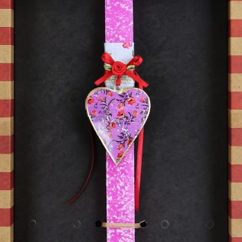 Λαμπάδα Καρδιά φλοράλ - Φούξια