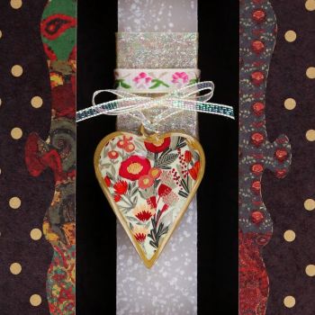 Μια ρομαντική, φωτεινή λαμπάδα που ταιριάζει σε κάθε ηλικία. Η χειροποίητη μεταλλική καρδιά διπλής όψης με φλοράλ εκτύπωση και χρυσή πινελιά στο χέρι δίνει χαρακτήρα και διαχρονική κομψότητα. Σχεδιασμένη από τη Synchronia και κατασκευασμένη στην Ινδία στο πλαίσιο δίκαιου εμπορίου.