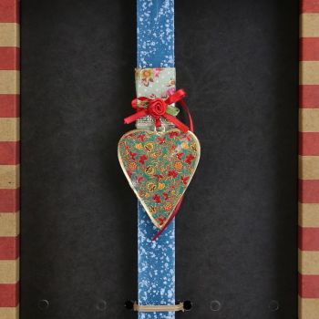 Λαμπάδα Καρδιά φλοράλ - Πετρόλ