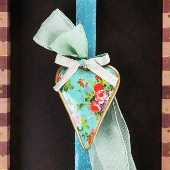 Λαμπάδα Καρδιά φλοράλ - Τιρκουάζ