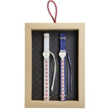 Δύο υπέροχες λαμπάδες σε μία συσκευασία. Χειροποίητα κεριά διακοσμημένα με ξύλινες καρδιές με μηνύματα και υφαντές καρδουλάτες κορδέλες. Για εσάς που μοιράζεστε τα πάντα αυτή είναι η τέλεια επιλογή! Τα υπόλοιπα υλικά διακόσμησης είναι υψηλής ποιότητας και εισάγονται αποκλειστικά από την SYNCHRONIA. Τα αντικείμενα σχεδιάζονται ή επιλέγονται για την αισθητική, την αυθεντικότητα, την φιλικότητα προς το περιβάλλον και το δίκαιο εμπόριο. • Το κερί είναι αρωματικό, χειροποίητο και κατασκευάζεται στην Ελλάδα • Περιλαμβάνεται η εντυπωσιακή συσκευασία δώρου με ένα ποτηράκι για το κερί • Ύψος λαμπάδας: 30εκ. • Μέγεθος συσκευασίας: 25x6x35 εκ.