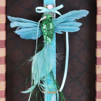 Εντυπωσιακή πασχαλινή λαμπάδα διακοσμημένη ένα κολιμπρί υπερπαραγωγή! Φανταχτερά φτερά και πούπουλα, πούλιες και λαμέ, σατέν κορδέλες. Θα το βρείτε σε διάφορες αποχρώσεις για να επιλέξετε. Τα υλικά διακόσμησης είναι υψηλής ποιότητας και εισάγονται αποκλειστικά από την SYNCHRONIA. Τα αντικείμενα σχεδιάζονται ή επιλέγονται για την αισθητική, την αυθεντικότητα, την φιλικότητα προς το περιβάλλον και το δίκαιο εμπόριο. • Το κερί είναι αρωματικό, χειροποίητο και κατασκευάζεται στην Ελλάδα • Περιλαμβάνεται η εντυπωσιακή συσκευασία δώρου με ποτηράκι για το κερί • Ύψος λαμπάδας: 30εκ. • Μέγεθος συσκευασίας: 20x5,5x40 εκ.