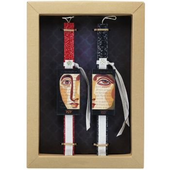 Σετ πασχαλινών λαμπάδων με μαγνητάκια αγιογραφία σε σύγχρονο στιλ, για να κρατήσετε μαζί με τον/την σύντροφό σας ή με κάποιο άλλο αγαπημένο σας πρόσωπο. Τα υλικά διακόσμησης είναι υψηλής ποιότητας και εισάγονται αποκλειστικά από την SYNCHRONIA. Τα αντικείμενα σχεδιάζονται ή επιλέγονται για την αισθητική, την αυθεντικότητα, την φιλικότητα προς το περιβάλλον και το δίκαιο εμπόριο. • Το κερί είναι αρωματικό, χειροποίητο και κατασκευάζεται στην Ελλάδα • Περιλαμβάνεται η εντυπωσιακή συσκευασία δώρου με ποτηράκι για το κερί • Ύψος λαμπάδας: 30εκ. • Μέγεθος συσκευασίας: 25x6x35 εκ.