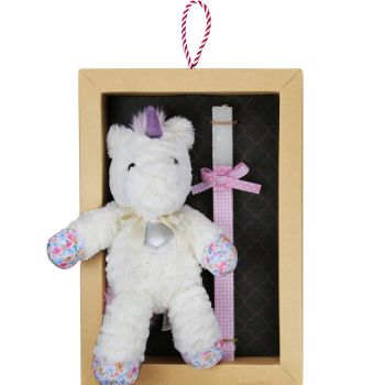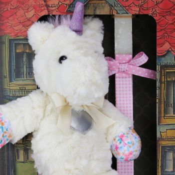 Λαμπάδα Λούτρινος μονόκερος heart - Κρεμ